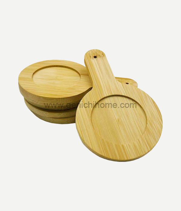 Rumah / Produk / Persediaan Mat / Coster Bambu / Putaran coaster dengan pegangan