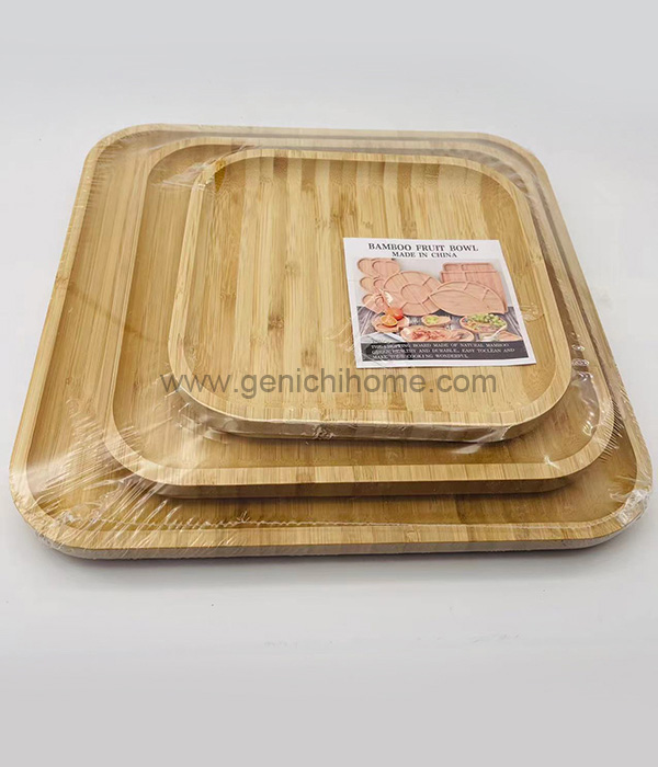 | Dimensinya adalah 19.5*19.5*2.2cm, 24.5*24.5*2.2cm, 29.5*29.5*2.2cm, dan tinggi keseluruhan adalah 4cm | 1355 | 47*31*31 | 0.045 | 12 | Bambu | Gaya persegi, Mendukung layanan logo khusus. |