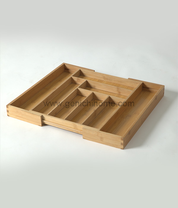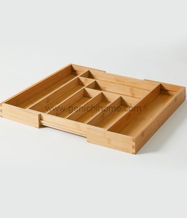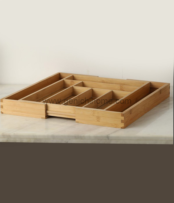 Produk ini tidak memerlukan perakitan dan dapat ditarik untuk meningkatkan ruang penyimpanan. Produk bambu ramah lingkungan dan Anda dapat menyimpan peralatan makan dengan percaya diri.